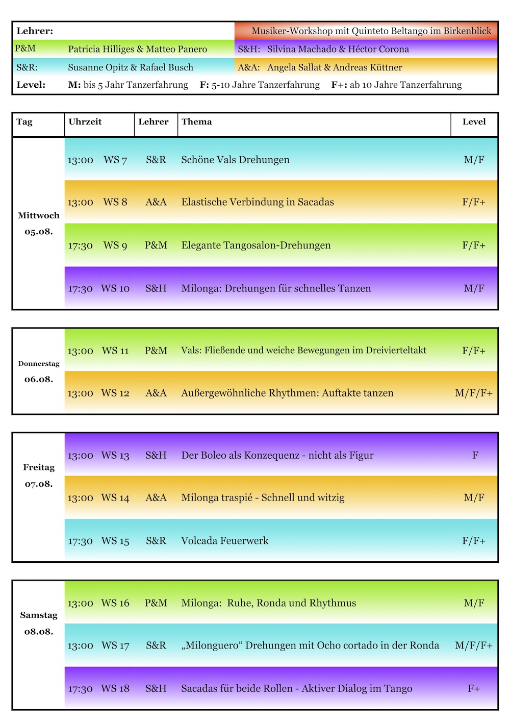 Bitte beachtet bei der Auswahl der Themen unbedingt eurer Tanzlevel und eure Tanzerfahrung,